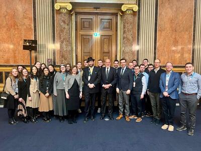 The next day, the Straus Scholars toured the Austrian Parliament, and examined its history of shifting political parties, including Herzl’s Zionist party and a proudly antisemitic one. On more than a few occasions, duels were fought and the police had to be called in over intra-Parliamentary debates. Now, owning up to its history of anti-Jewish bias, the recently renovated Austrian Parliamentary Library boasts an interactive exhibit showcasing Jewish life in Vienna and arguing how Jew-hatred is anti-democratic. The exhibit is curated by Rifka Junger, the Parliament’s advisor on combatting antisemitism and a current YU graduate student in Jewish history. It offers a moving and meaningful means of addressing the current post-October 7th moment. The students then spoke with Jewish members of Parliament Dr. Martin Engelberg and David Pinchasov about the revival of Jewish life in today’s Vienna and the increasingly pro-Israel stance Austria’s political leadership has taken since the chancellorship of Sebastian Kurz and the formation of the Transatlantic Friends of Israel Caucus.